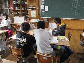 | 11月5日(水) 町地震・津波避難訓練の様子 ・机の下で身の安全を確保し、避難場所へ移動、安否確認まで訓練を行いました。 |
