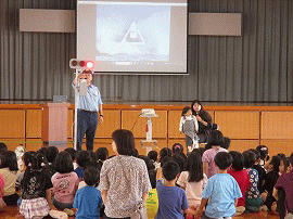 | 4月17日(金) 【交通安全教室の様子(1学年)】 ・横断歩道をわたる、信号をまもる、飛び出さない、安全な交通ルールを学びました! ・安全に気をつけて身を守りましょう。 |