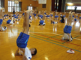 | 5月8日(木) 【体力テストの様子】 ・体力テスト頑張ってます!!50m走、ボール投げ、シャトルラン他・・・ ・1、2年生は5、6年生がサポートしながら頑張っています! |