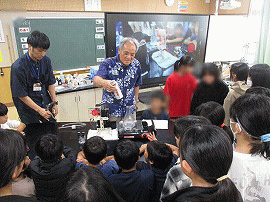 | 10月31日(金) エネルギー教育の様子【5学年】 ・琉球大学名誉教授 清水洋一先生による「エネルギー教育」が5学年全クラスに行われました。 ・クイズや体験を通してエネルギーや省エネについてたくさん学ぶことが出来ました! ・清水洋一先生ありがとうございました! |