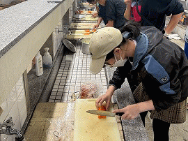 | 6月26日(木) 調理実習の様子【6学年】 ・「野菜炒め」 ・グループで協力しながら、おいしい料理ができました! |