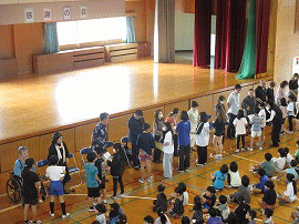 | 9月30日(火) 福祉体験の様子【4学年】 ・車いす体験では、段差があるところでの動かし方について学びました。 ・アイマスク体験では、視覚障害をもつ方と、介助側の両方の大変さを知ることができました。 ・みんなが「思いやりの心」をもって生活できるといいですね。 |