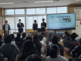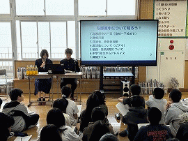 | 2月24日(火) 進路講話 (ようこそ先輩!) の様子【6学年】 ・中学2年生の先輩が中学校生活について話してくれました。 ・小学校との違いを丁寧に伝えてくれました。 |