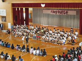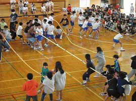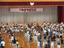 | 3月9日(月) 「六年生を送る会」の様子 ・6年生へ感謝の気持ちをこめて各学年からダンスや出し物が披露され体育館が笑顔に包まれました! ・5年生は6年生に挑戦!5色綱曳合戦が行われました!やっぱり6年生は強かった! ・6年生は良い思い出になったかな。 |